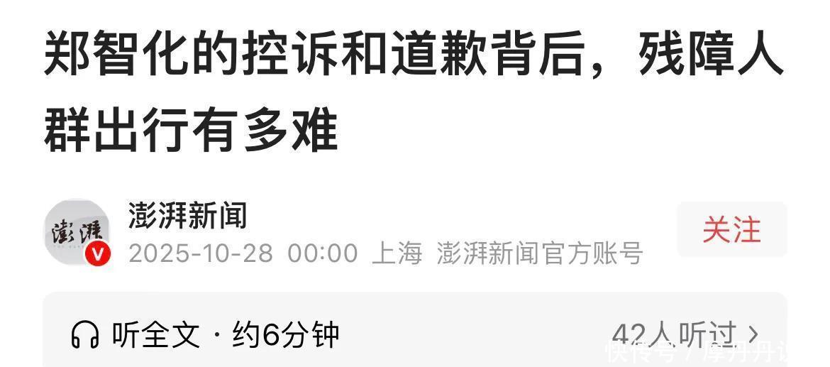 最开始跟风骂的网友和仓促发声的媒体,其实也有点“错”。没等证据出来就先站队,被情绪带着走,忽略了“事实要比感受复杂”的道理。说到底,纠结“谁错了”没多大意义。郑智化的情绪化表达不对,但他意外把残障群体的出行困境推到了公众面前。