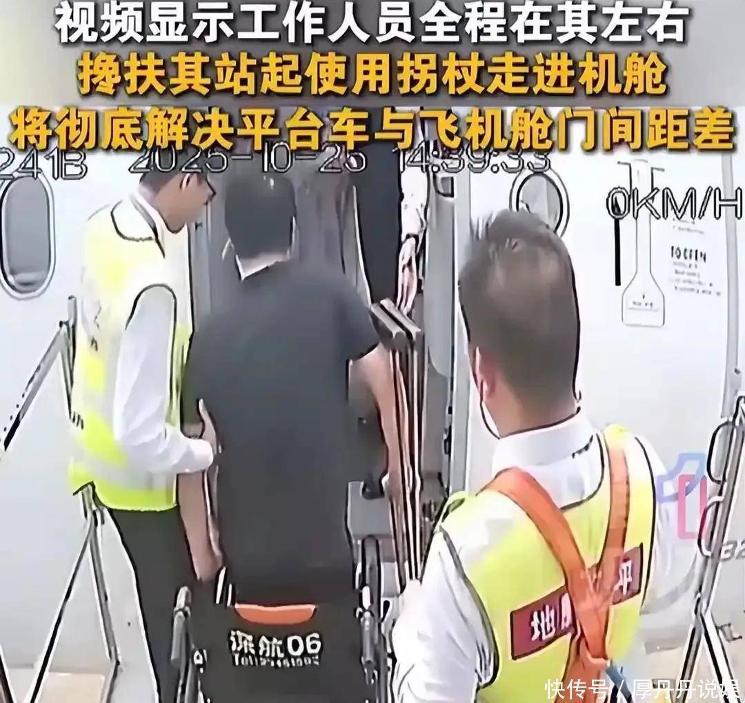 可隔天监控一曝光,剧情直接反转。画面里明明有四名工作人员围着他,扶胳膊、抬腿、拎包,全程小心翼翼搀扶着登机,哪儿有“连滚带爬”的影子?